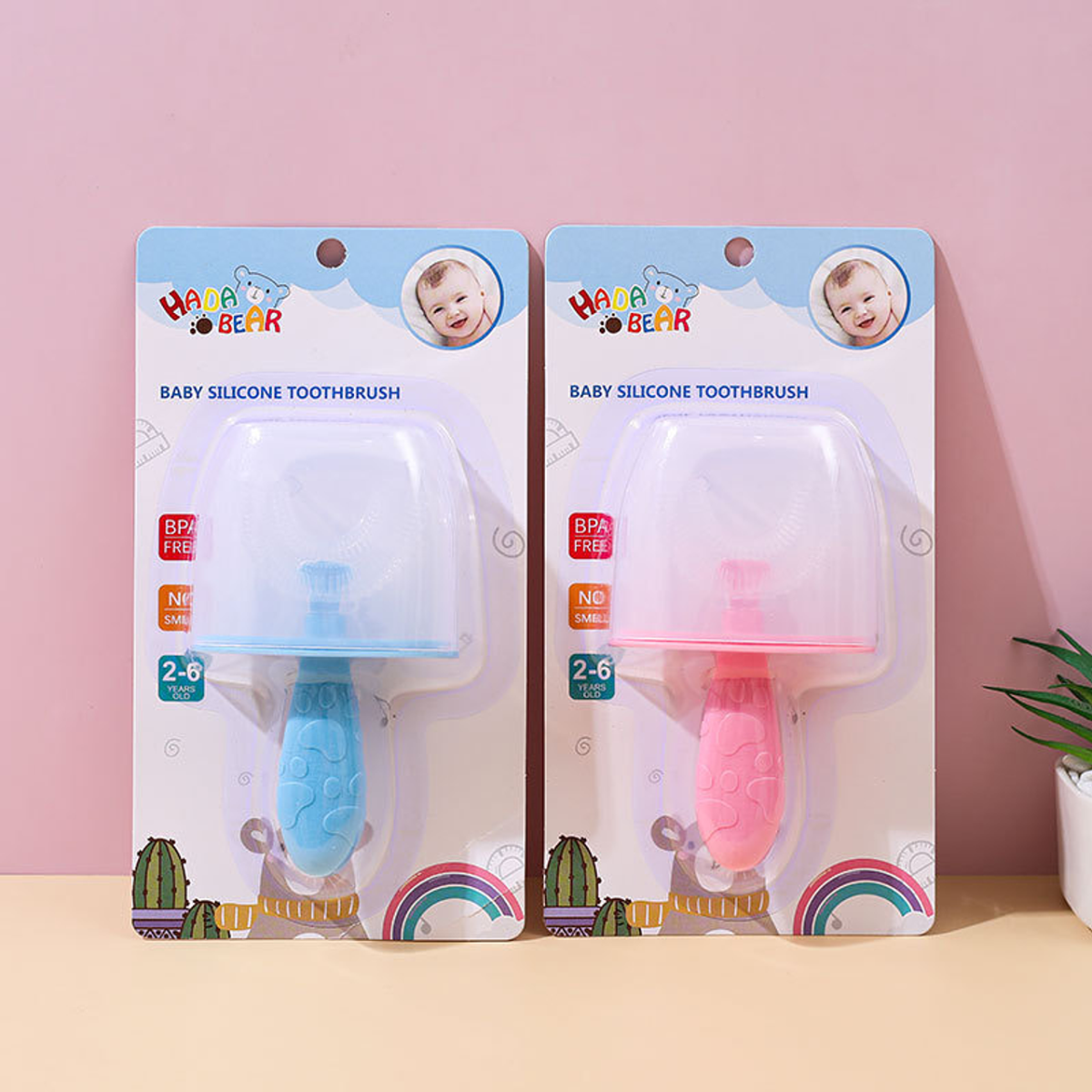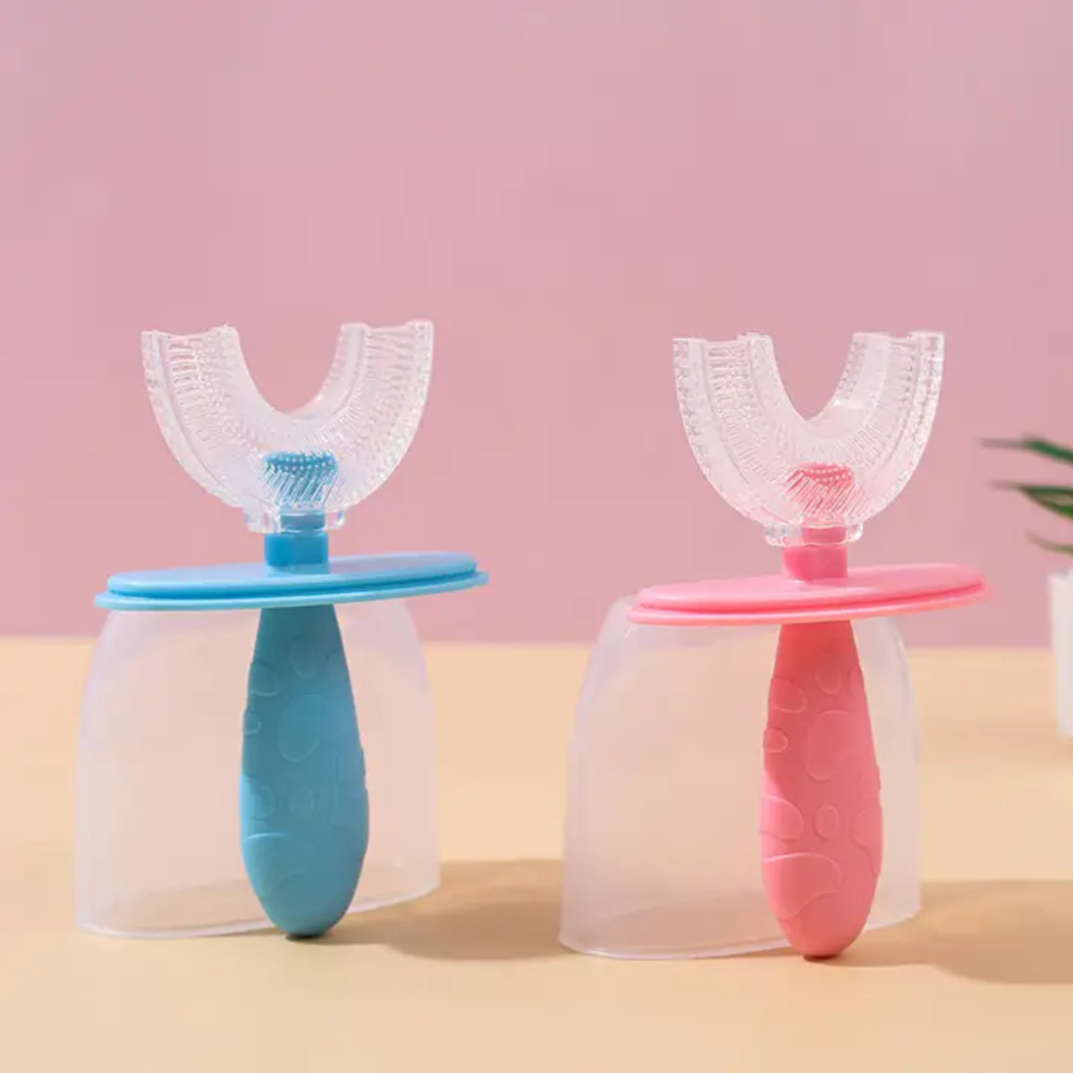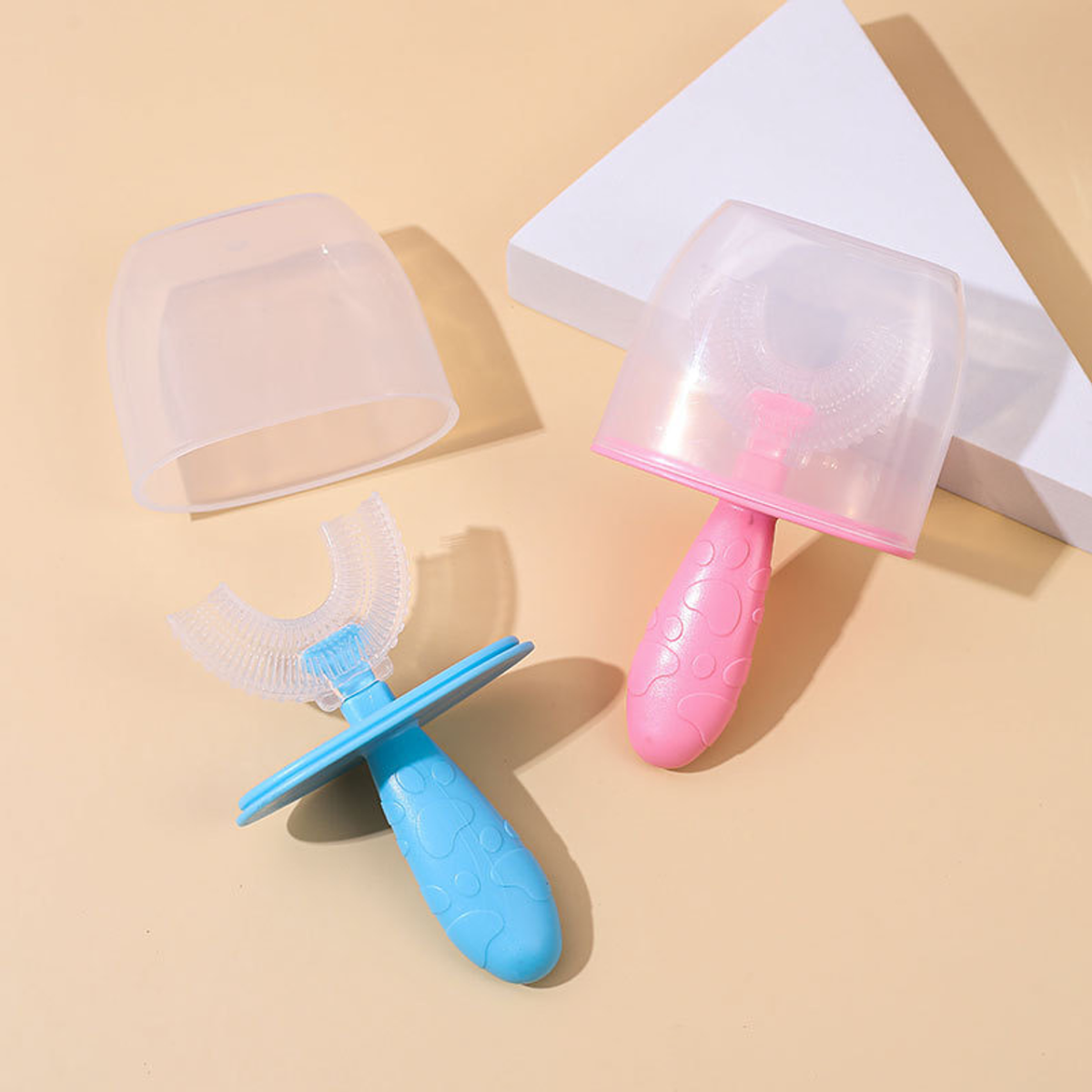 فرشاة اسنان على شكل حرف U للاطفال من السيليكون للرضع والاطفال الصغار مع راس فرشاة على شكل حرف U، فرشاة اسنان سيليكون فائقة النعومة.